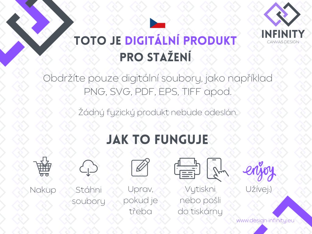 Toto je digitální produkt pro stažení do Vašeho PC, tabletu, mobilu nebo jiného elektronického zařízení podporující grafické programy, editační programy jako např. Adobe, Affinity, Canva, Corell a další.