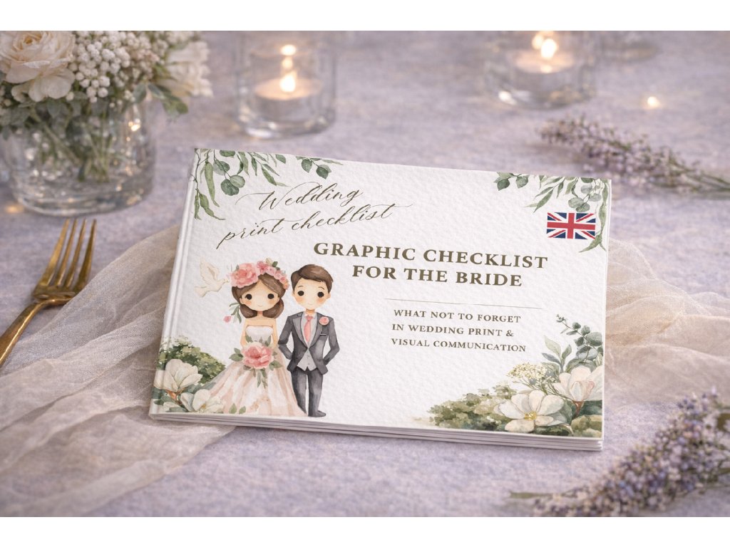 👉 Checklist vás krok za krokem provede vším, co se týká svatební grafiky a tisku – od oznámení a cedulí až po kontrolu před samotným tiskem.